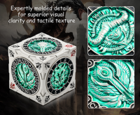 Dice Habit: 7-in-1 D&D Cube Spinner Dice - Green & Silver