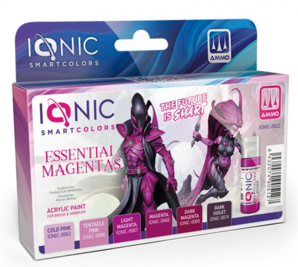 Bring your miniatures to life with chromatic richness and vibrant colors using the Essential Magentas Set from Ionic Smart Colors. This carefully curated selection of high-quality acrylic paints is perfect for any miniature project—fantasy or sci-fi, for display, or for tabletop gaming.